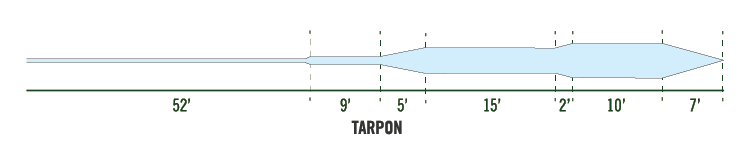 This taper was designed to cover all the needs of the tarpon angler. With an aggressive front head design the line is perfect for quick powerful shots, picking line up and shooting it right back out with ease. Paired with an extended belly allows this line to punch through the wind shooting line effortlessly while still retaining accuracy and making carrying line easier at longer distances. Perfect for giving the angler extra quality shots with the limited windows for presentation.